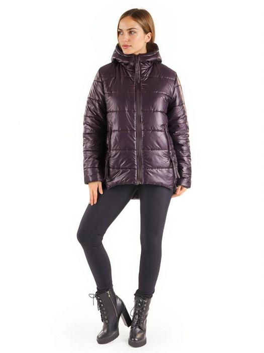 Kurtki o lekkim, pionowym pikowaniu również przynoszą świetny efekt wysmuklenia. Model w odcieniu śliwkowym — w połączeniu z miękką tkaniną i praktycznym kapturem — jest idealną inspiracją dla kobiet, które chcą połączyć styl z funkcjonalnością. Dzięki pionowym pikowaniom sylwetka wygląda lżej, a kurtka świetnie układa się podczas ruchu.